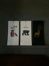 今回より仕様が少し変更になりました。毎年カレンダーの後ろにわら半紙のメモ紙をおつけしていましたが、印刷屋さんの仕様変更に伴い廃止いたしました。その代わりと言ってはなんですが、今年は一枚カードを増やし、表紙としておつけしました。その他は変わらずミシン目つき12枚綴りです。